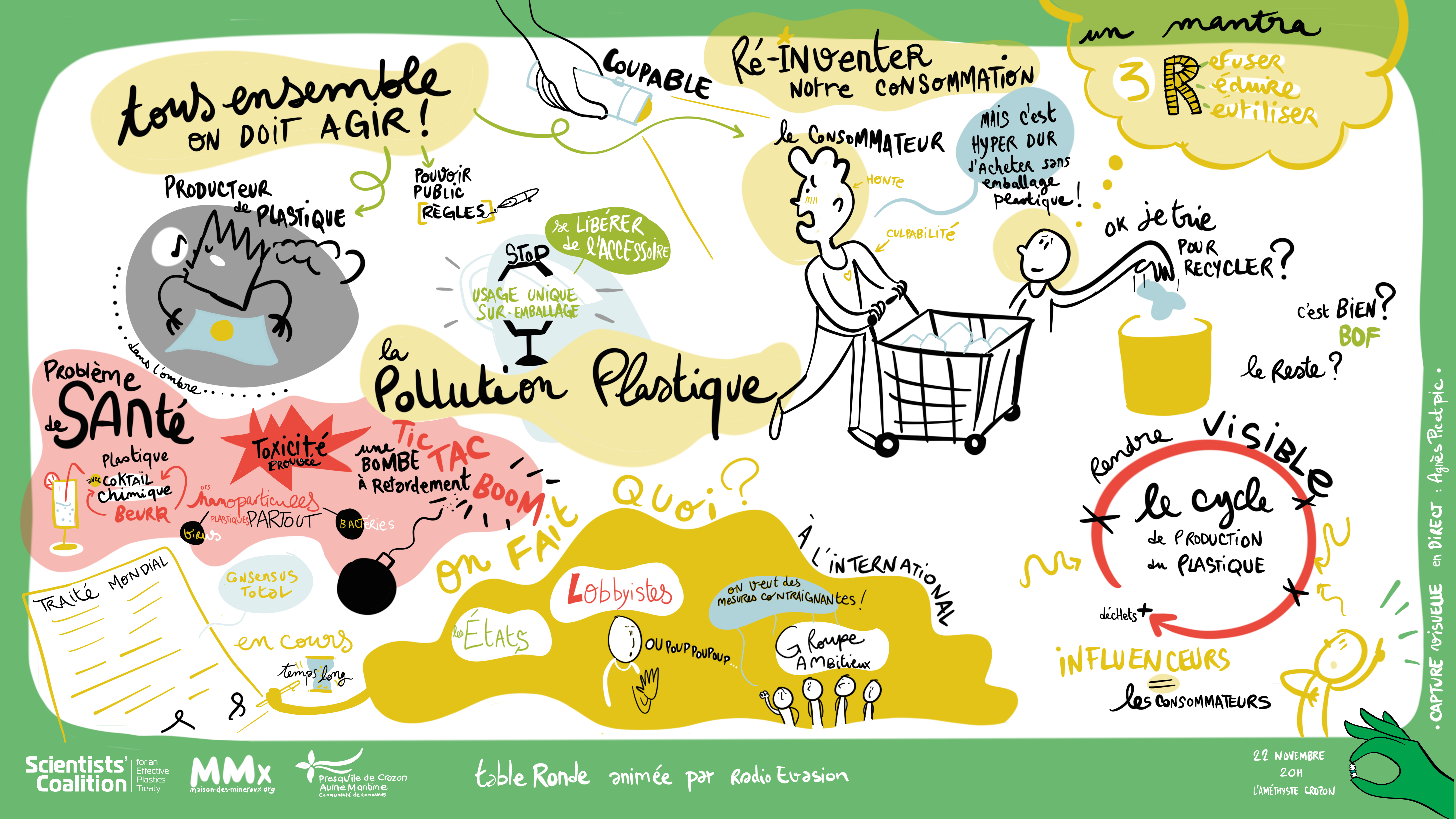 Cette conférence a été animée par la journaliste Véronique Muzeau de radio Évasion et mise en dessin par Agnès Payraudeau PIC & pic.(cf documents attachés).