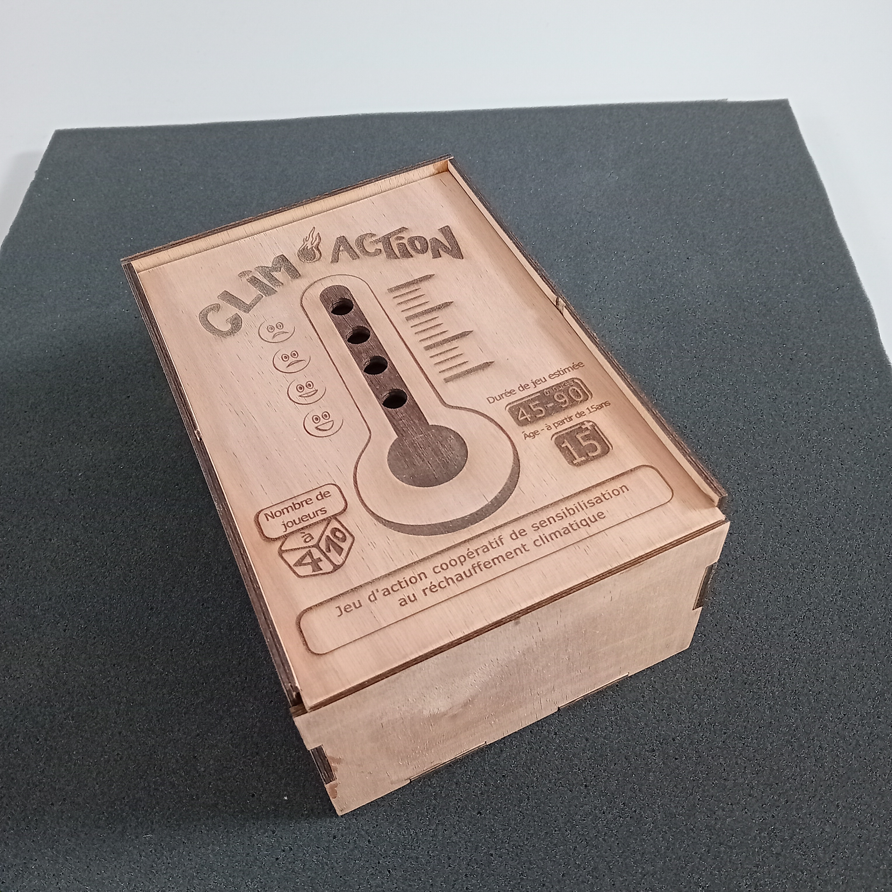 La boite est en contre-plaqué Okoumé de 5mm d’épaisseur.