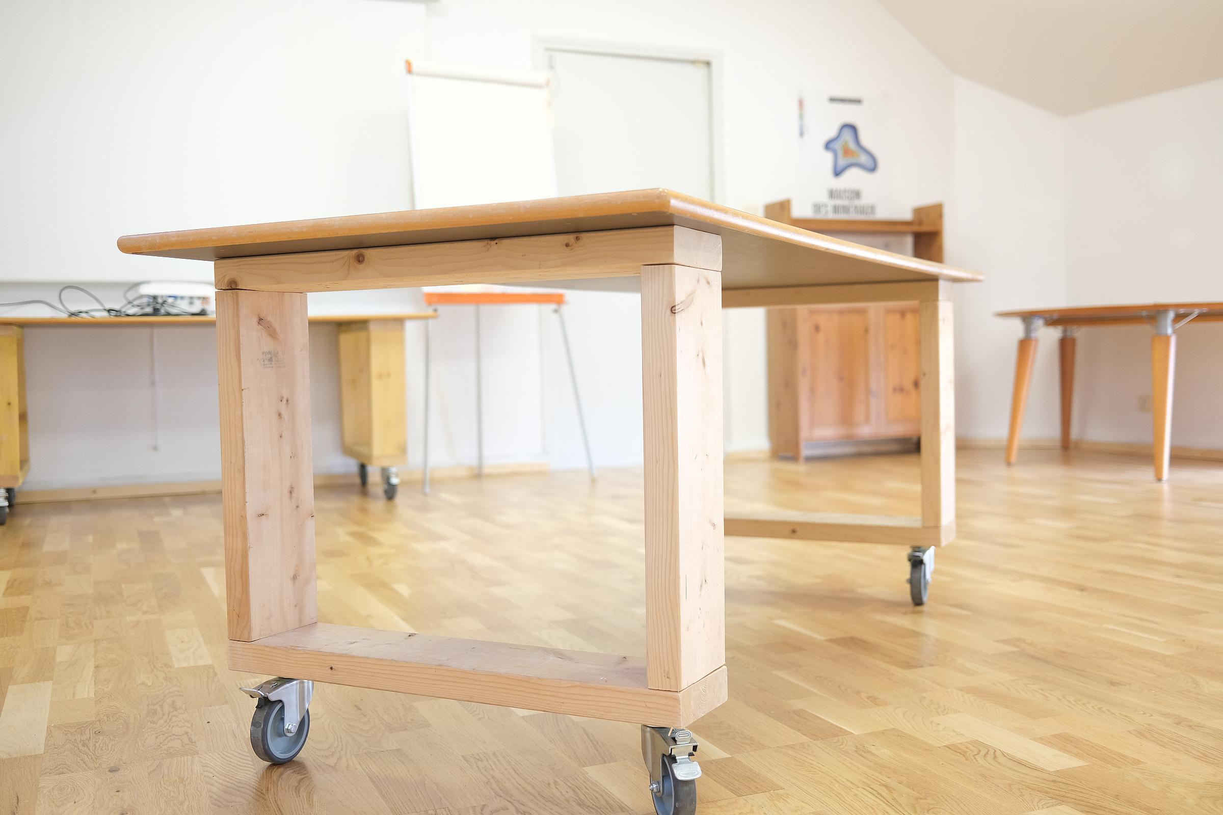 Mais, en fonction de l’occupation des salles, par telles ou telles activités nous devons être mobile d’une pièce à l’autre. A la fois au niveau du matériel et des machines outils dans la mesure du possible. Quoi de mieux que la roue pour le faire ! Nous avons donc un mantra au Fablab « Sur roulettes, tes objets tu mettras » !