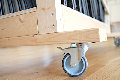 - de multiples aller-retours entre salles pour déplacer des caisses de matériel, désormais nous posons tout sur une table qui roule ET qui qui passe les portes (important forcément)